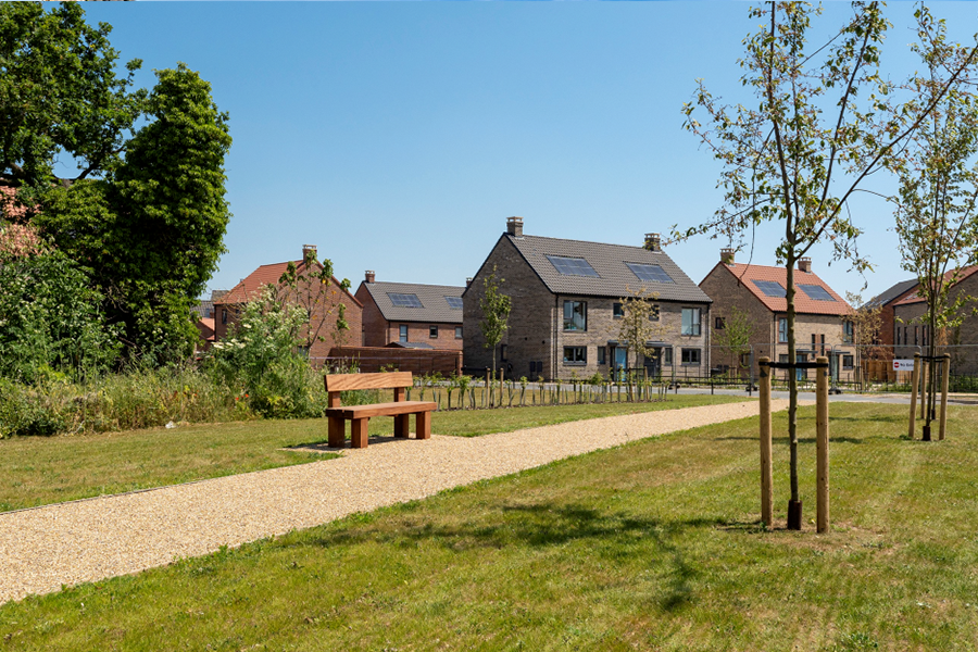 Across the development, homes sit comfortably within their surroundings, with open green spaces and landscaped areas helping create a calm, family-friendly environment that doesn’t feel like a typical new build.