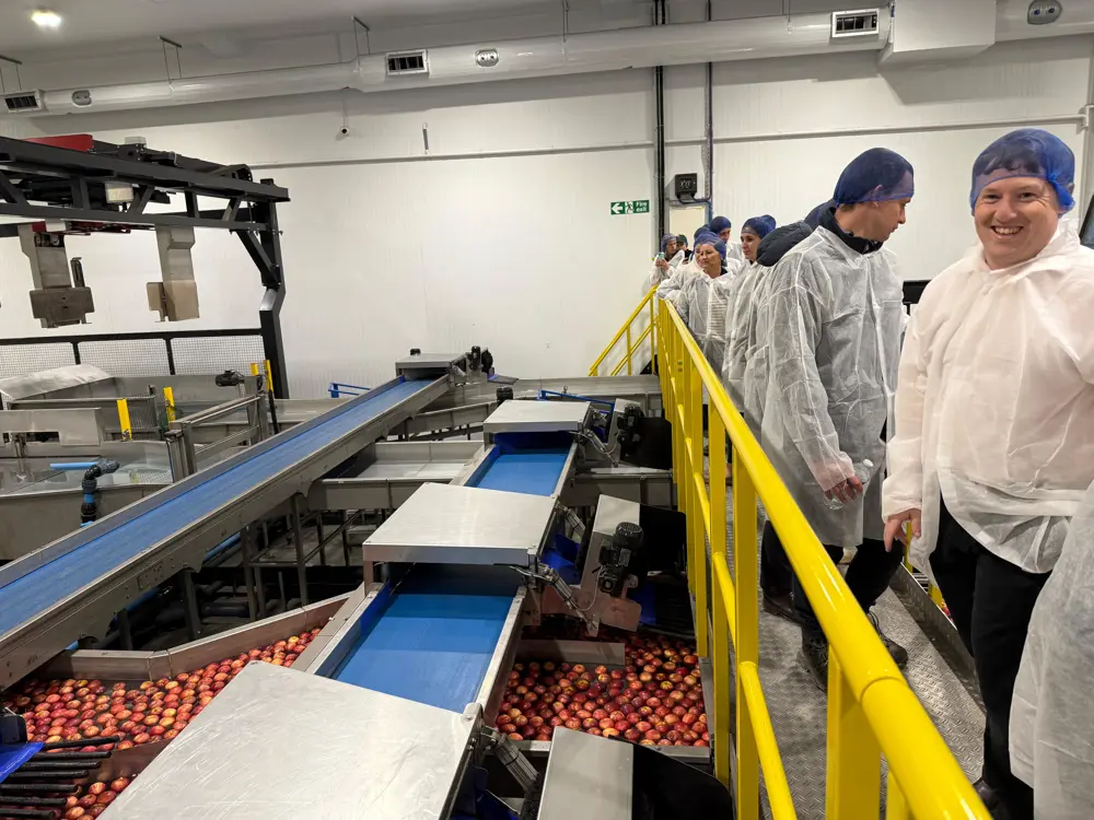 The Final day of the study tour compromised of a tour of Charltons Kent packaging plant and fruit growing facilities. Charltons were established in 1946 and their operation spans around 132 hectares of growing space as well as around six hectares of warehouse and packing facilities. In addition to they have two farms in Norfolk. The Kent site was able to pack and store top, soft and stone fruit from both overseas and UK growers as well as having contracts with most of the UK leading supermarkets.