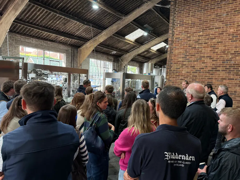 After the Biddenden tour, the team then headed to the Hukins Hops farm tour where Dom showed the team around a 120 year old Family hop farm, we saw different varieties of hops such as Ernest and Bullion which give off apricot and orange flavours as seen in the more ‘modern craft beers’. In addition to this, we were able to see the processing of hops through their hop’s processing plant and saw the stages right through to packing the hops in bales. The team were given a demonstration in how the drying kilns worked. Finally, the team headed to the McCanns Brewery tap room to enjoy a drink created from the hops that were used on site.