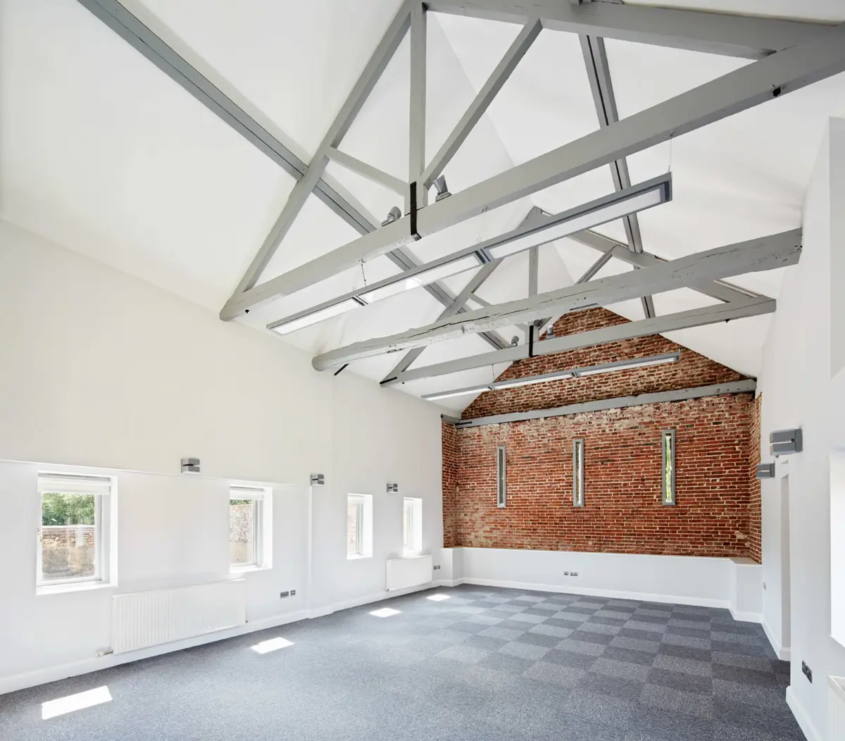 This is the second barn in the Hethersett complex, with Small Barn being the first. Having been converted 10 years earlier, the office was looking tired and needed a complete refurb and overhaul to better reflect current tastes for open plan office spaces, with appropriate ancillary areas. Our brief was for a complete refurbishment and modernisation of the building whilst ensuring the style tied in with the aesthetics of the Small Barn. A kitchenette was introduced, and a mezzanine floor removed to create lighter and volume for the main working space. The building was re-decorated in lighter tones, with new fixtures and fittings and a reception / waiting area. Externally there were some minor repairs and maintenance, with the joinery re-decorated to reflect the interior palette.