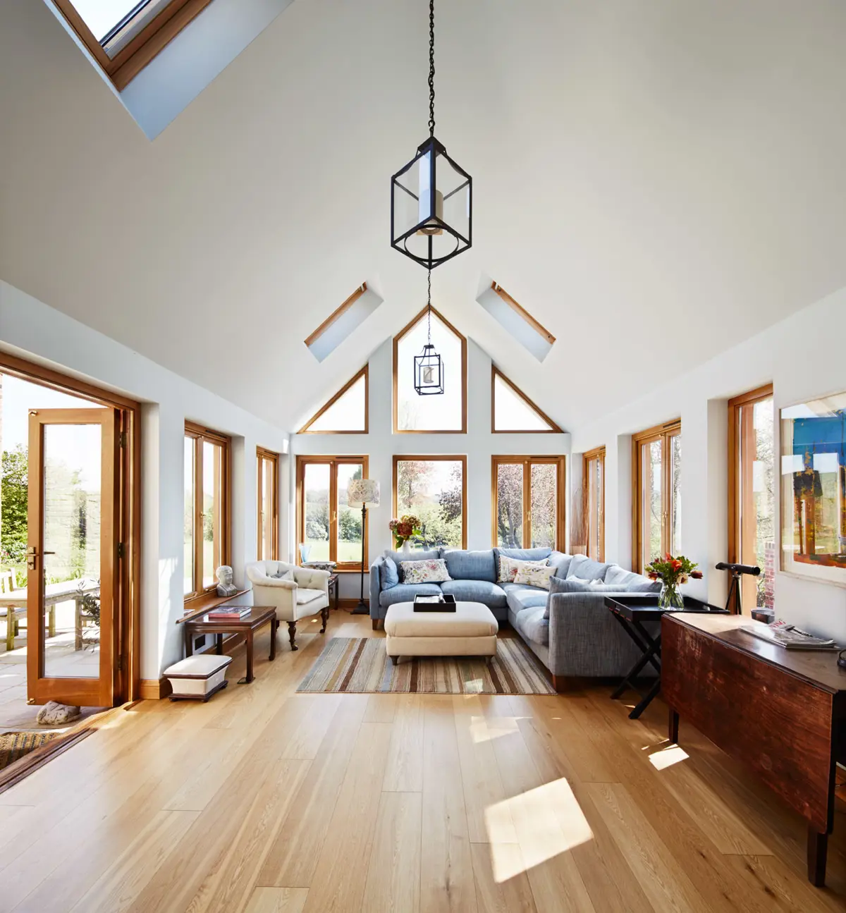 The client sought to extend and improve their existing farmhouse with two extensions to provide a new utility and boot room, along with a larger garden room and en-suite master bedroom. The house was then able to connect with the garden and allow better natural daylight into the ground floor living and kitchen areas. The spacious and light filled interior spaces have offered a complete contrast to the traditionally darker rooms of traditional farmhouses.